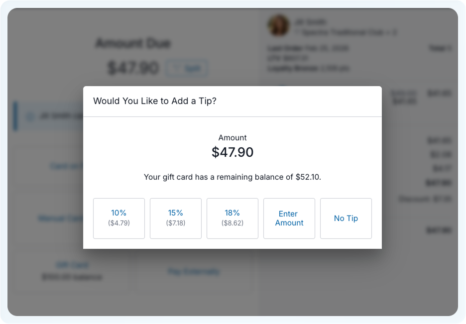 POS Tip Prompt with Gift Cards