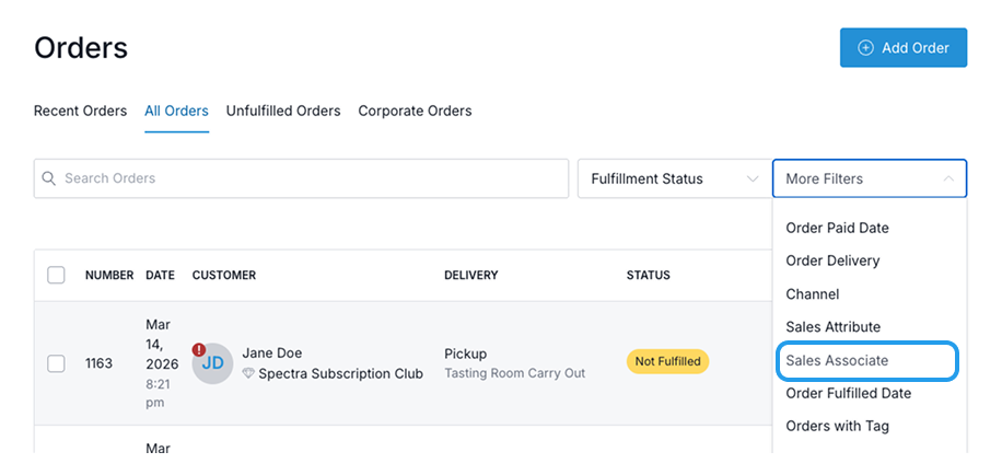 Filter Orders by Sales Associate