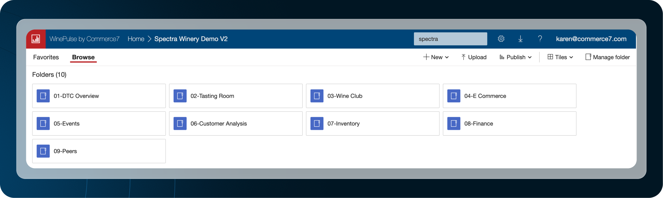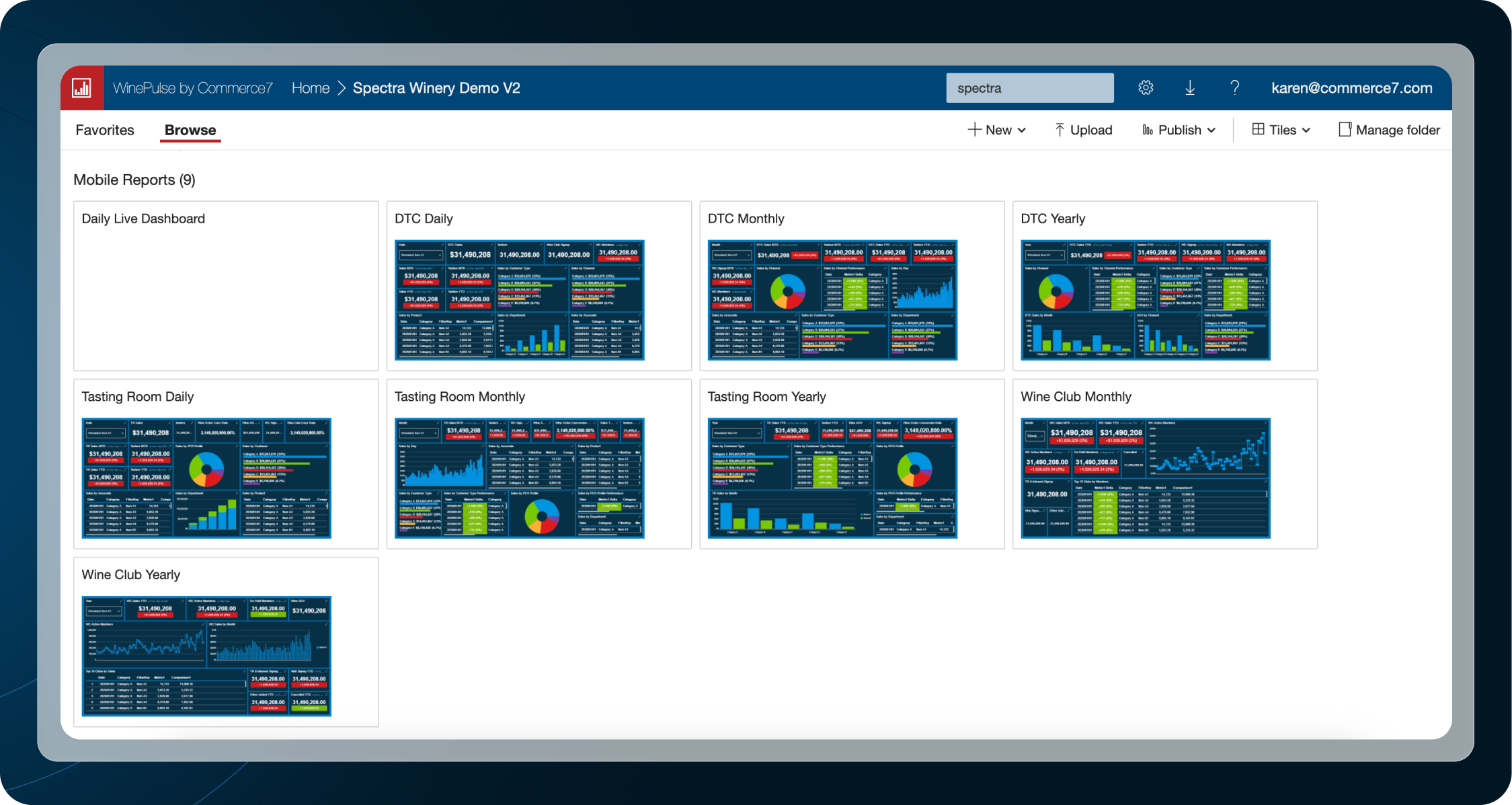 WinePulse is now available to all live Commerce7 clients, from Lite through Enterprise, accessible in a single click directly within Commerce7. One click launches you into your fully synced reporting environment.